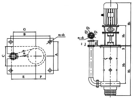 1、在性能參數(shù)表確定進口口徑、配套電機轉(zhuǎn)速r/min、配套功率KW三個主要參數(shù)后在同型號、安裝尺寸表中找到相同時滿足此三要素的泵的安裝尺寸即為該泵的安裝尺寸參數(shù)。