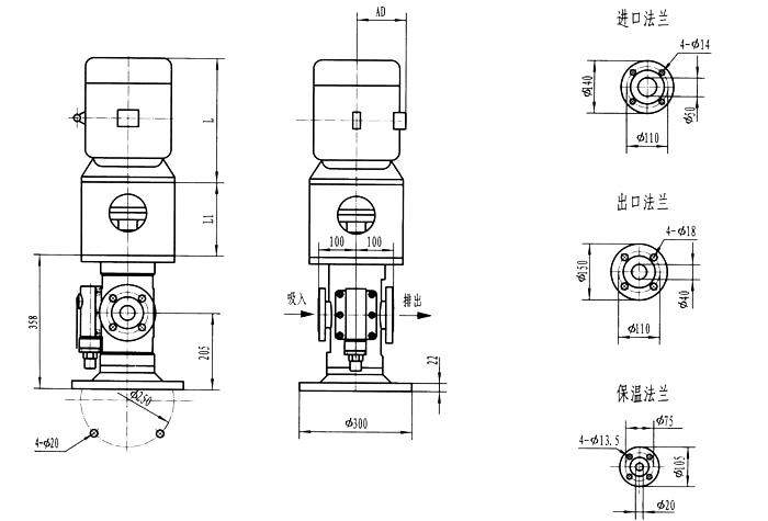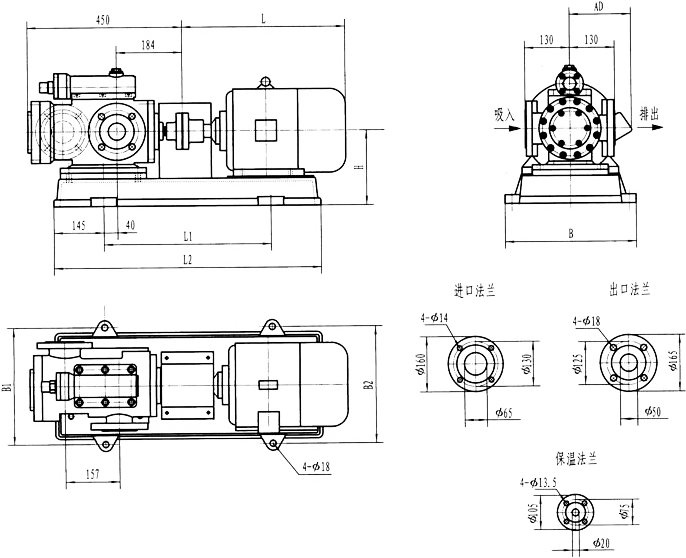 3GFBW50,3GF50型法蘭式泵外形及安裝尺寸